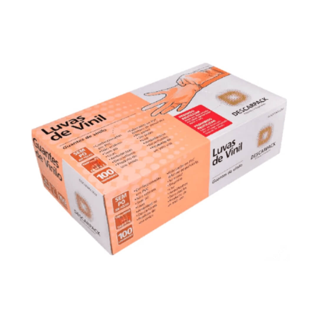 Luva de Vinil Transparente sem Amido 100UN - Descarpack