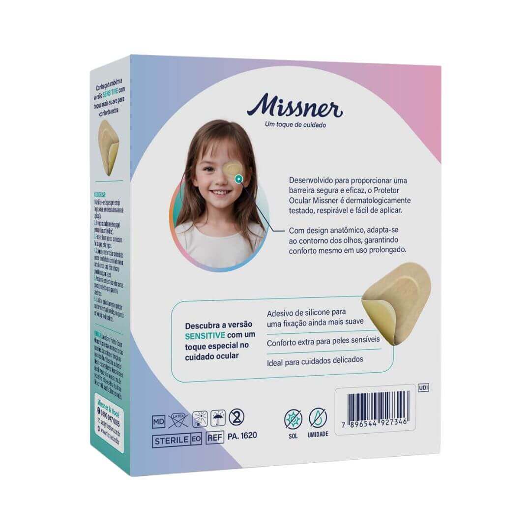 Protetor Ocular Adesivo Acrílico - Missner é indicado para tratamento de estrabismo, ambliopia e procedimentos que exigem oclusão dos olhos.